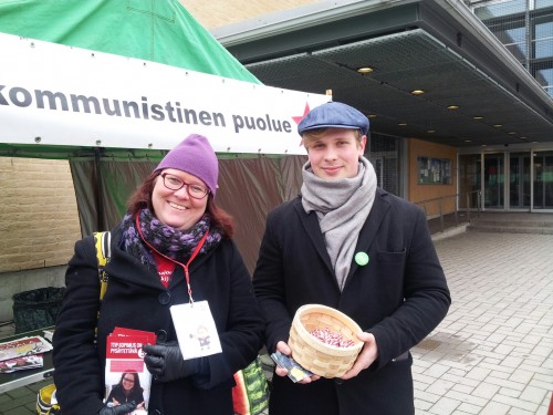Lauantaina 28.3. Myyrmäen markkinoilla ja sunnuntaina 29.3. Korson markkinoilla olivat puolueet telttoineen liikkeellä täydellä rintamalla.