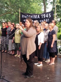Puhuja heitti haasteen myös vantaalaiselle yleisölle: Haastakaa Vantaan kaupunginjohtaja ja Vantaan kaupunki yhtymään Hiroshoman ja Nagasakin kaupunginjohtajien aloitteeseen liittyä ydinsodan vastaisten kaupunkien verkostoon.