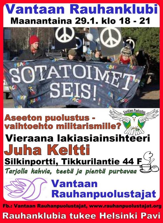 Vantaan Rauhanpuolustajien Rauhanklubi jatkuu taas.